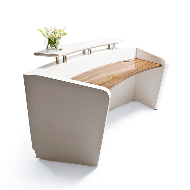 Şirket resepsiyonu, resepsiyonu, basit modern ofis resepsiyonu, egri otel lobisi, bar tezgahı, nakit masası