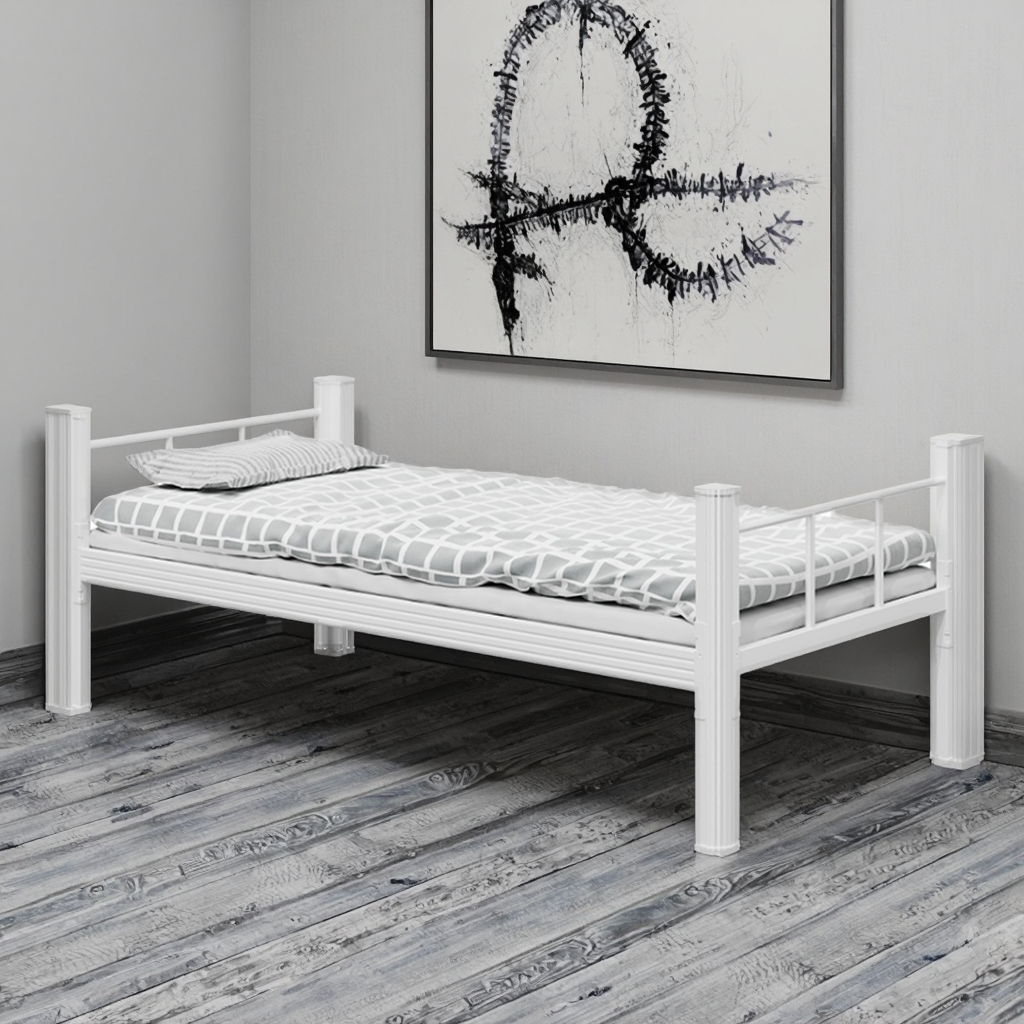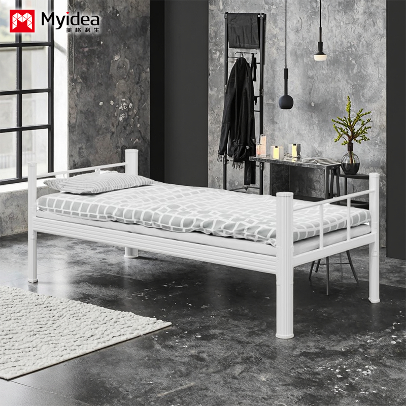 Apartman yurtları tek kişilik yatakları özelleştirebilir, modern kalın soğuk haddelenmiş çelik çerçeveli yataklar, dayanıklı tek katlı öğrenci yatakları