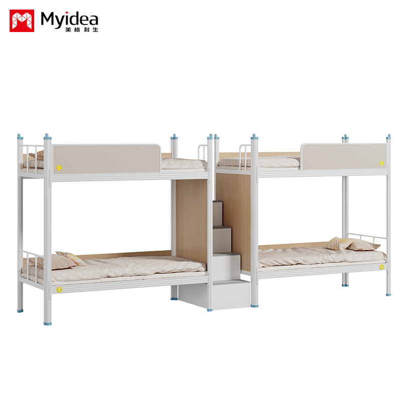Kalınlaştırılmış Dört Kişilik Yatak, Okul Yatakhanesi, Öğrenciler İçin Sabit Yataklar, Basamak Merdiven, Çok Kişilik Çalışan Yatakhanesi