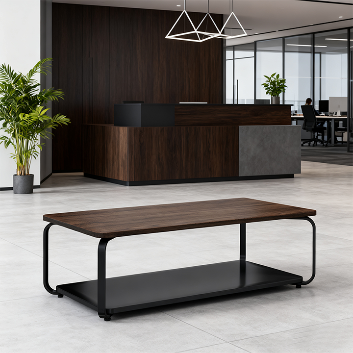 Basit Tarzı Ahşap Kahve Masası ve Çelik Ayak ve Plakalı müzakere masası Ekoloji Dostu Ticari Mobilya üretimi