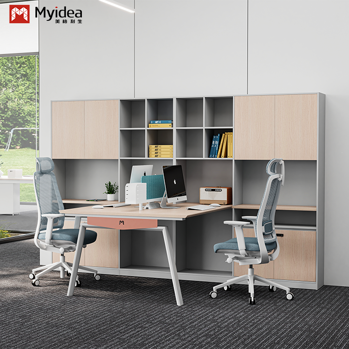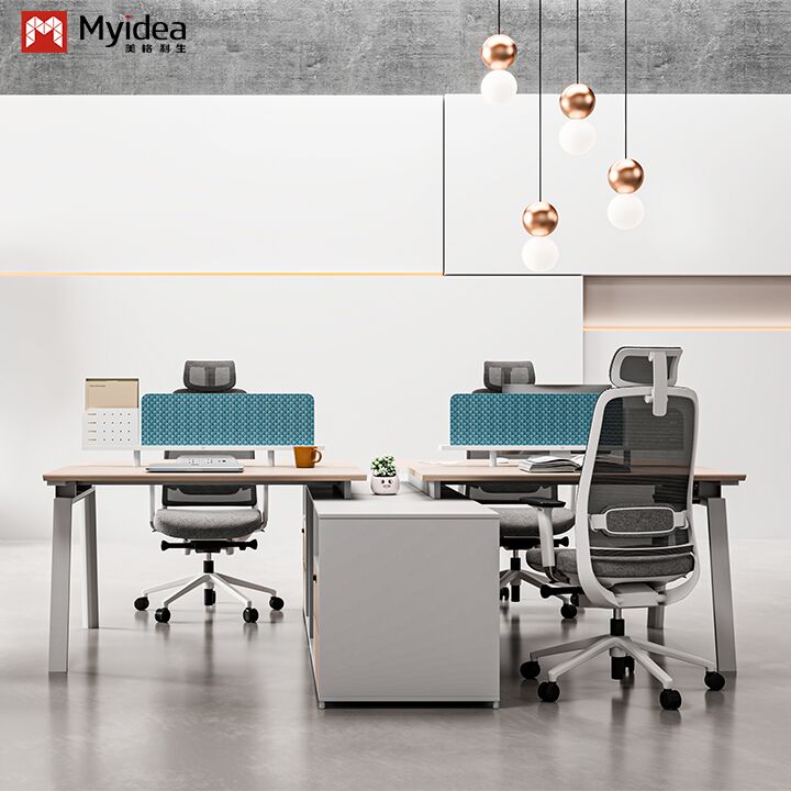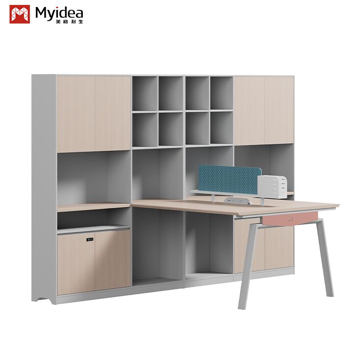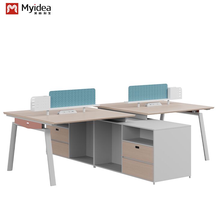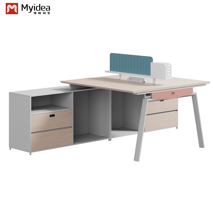 Modern Ekolojik Ahşap Personel Masası Kumaş Ekranlı Çelik Ayaklı Geniş Depolama Dolaplı Serbest Ofis Mobilyası